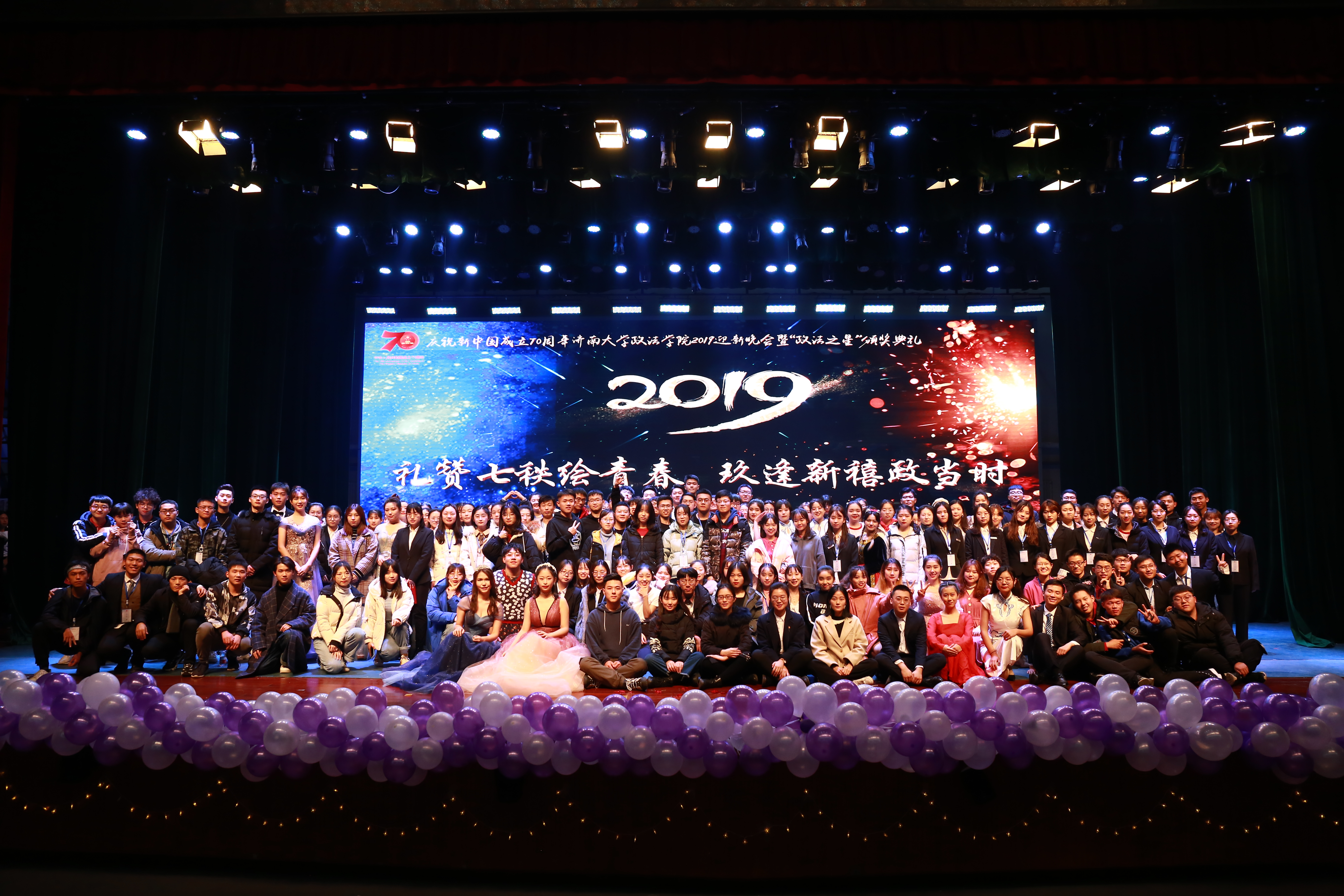 七秩,星辰,韶华,新禧,晚会从开始至高潮至落幕,最终圆满结束,展现出政法学子蓬勃向上的姿态,呼吁新时代青年时刻铭记祖国,不忘初心,砥砺前行,以梦为马,不负韶华,为祖国繁荣复兴贡献自己的力量。
