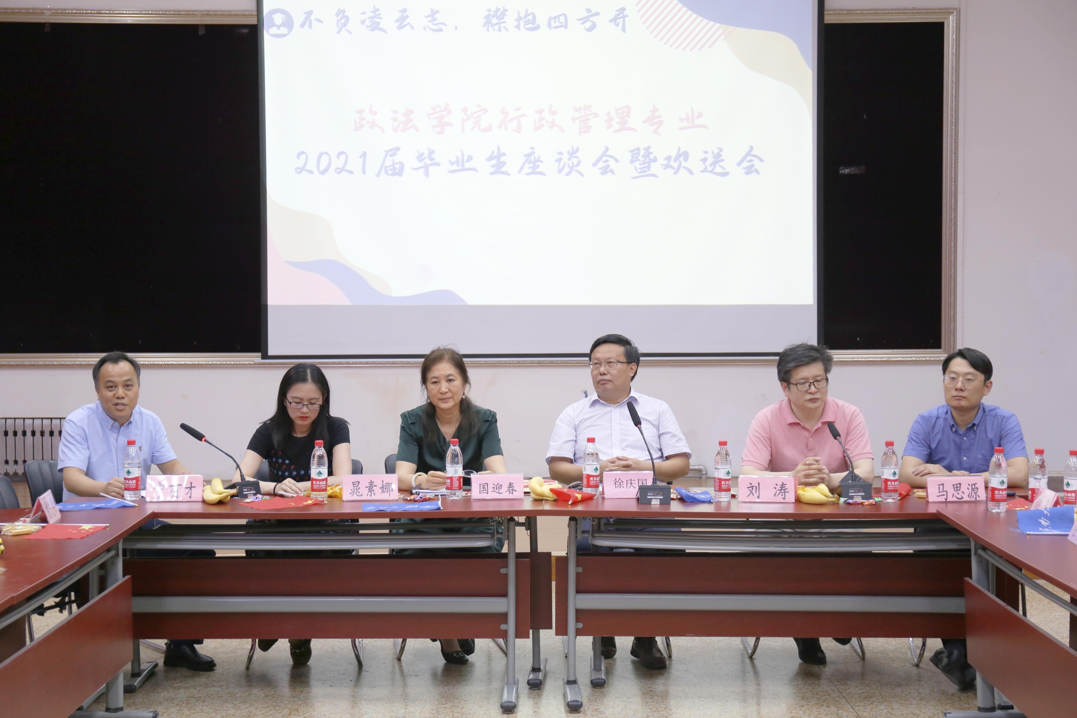 又是一年毕业季,又到师生话别时。6月24日下午,行政管理系在四教模拟法庭隆重举行“不负凌云志,襟抱四方开——行政管理专业2021届毕业生座谈会暨欢送会”。当前,党史学习教育进入走深、走实、走心的关键时期,我们即将迎来建党百年华诞,百年伟大征程,百年筚路蓝缕,百年风华正茂。在这样一个重要的历史时刻,举行毕业生座谈会暨欢送会,具有特殊的意义。