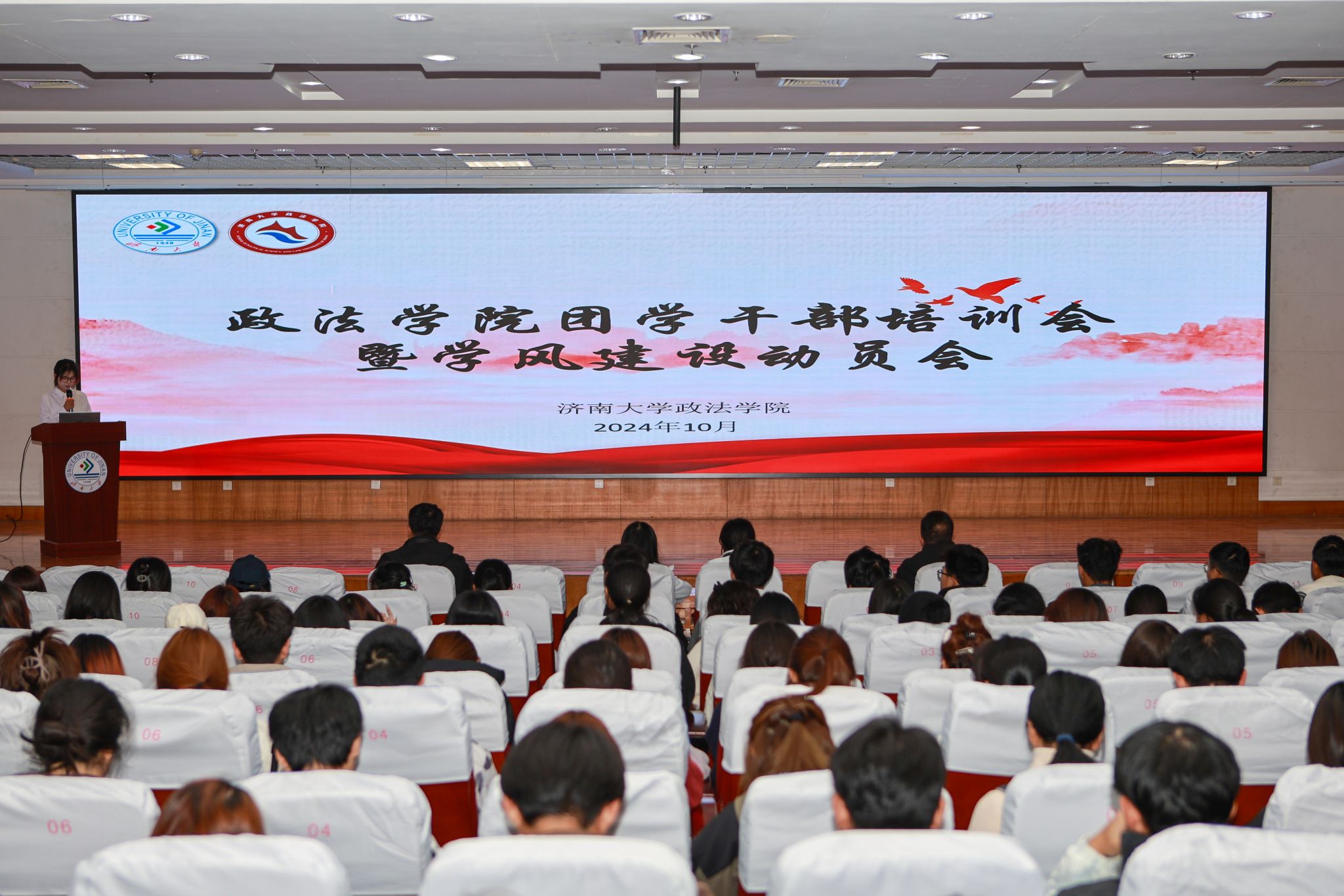 在第二学术报告厅组织开展团学干部培训会暨学风建设动员会。学院学工人员、学生组织主席团、班级团学干部、宿舍长参加会议。法学2305班团支书张晖晗主持会议。