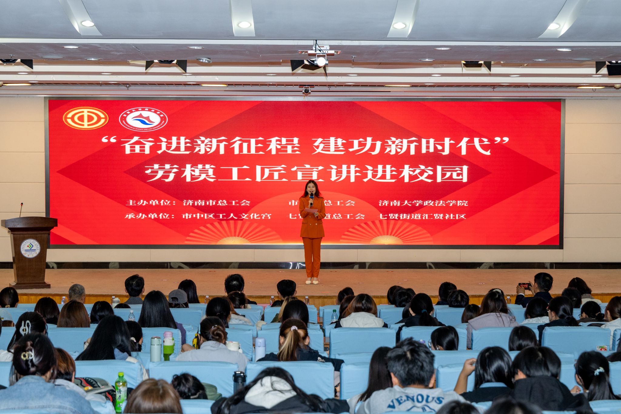 联合济南市市中区总工会、七贤街道总工会邀请济南市总工会“筑梦泉城”劳模工匠事迹宣讲团来我校开展“奋进新征程 建功新时代”劳模工匠宣讲活动。党委常委、副校长李强,济南市总工会宣教部二级调研员张昭力,党委学生工作部(处)部(处)长卢旺,禁忌书屋