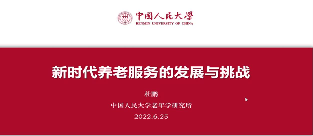 论坛嘉宾主题发言分为两个阶段,第一阶段由高校人口学领域的知名专家就老年问题的相关研究议题做了主旨发言。中国人民大学副校长杜鹏教授报告的主题为《新时代养老服务的发展与挑战》,总结了我国养老服务发展新背景、养老服务发展新成就、新时代养老服务发展面临的挑战;指出我国目前养老服务发展目标逐步明确,发展重心转向“提高质量”,发展过程融入经济社会发展全过程,制度与标准体系建设更加完善,多元协同治理能力不断提升,医养结合服务体系更加健全,智能技术运用更加广泛,疫情倒逼老年健康服务提级升档。