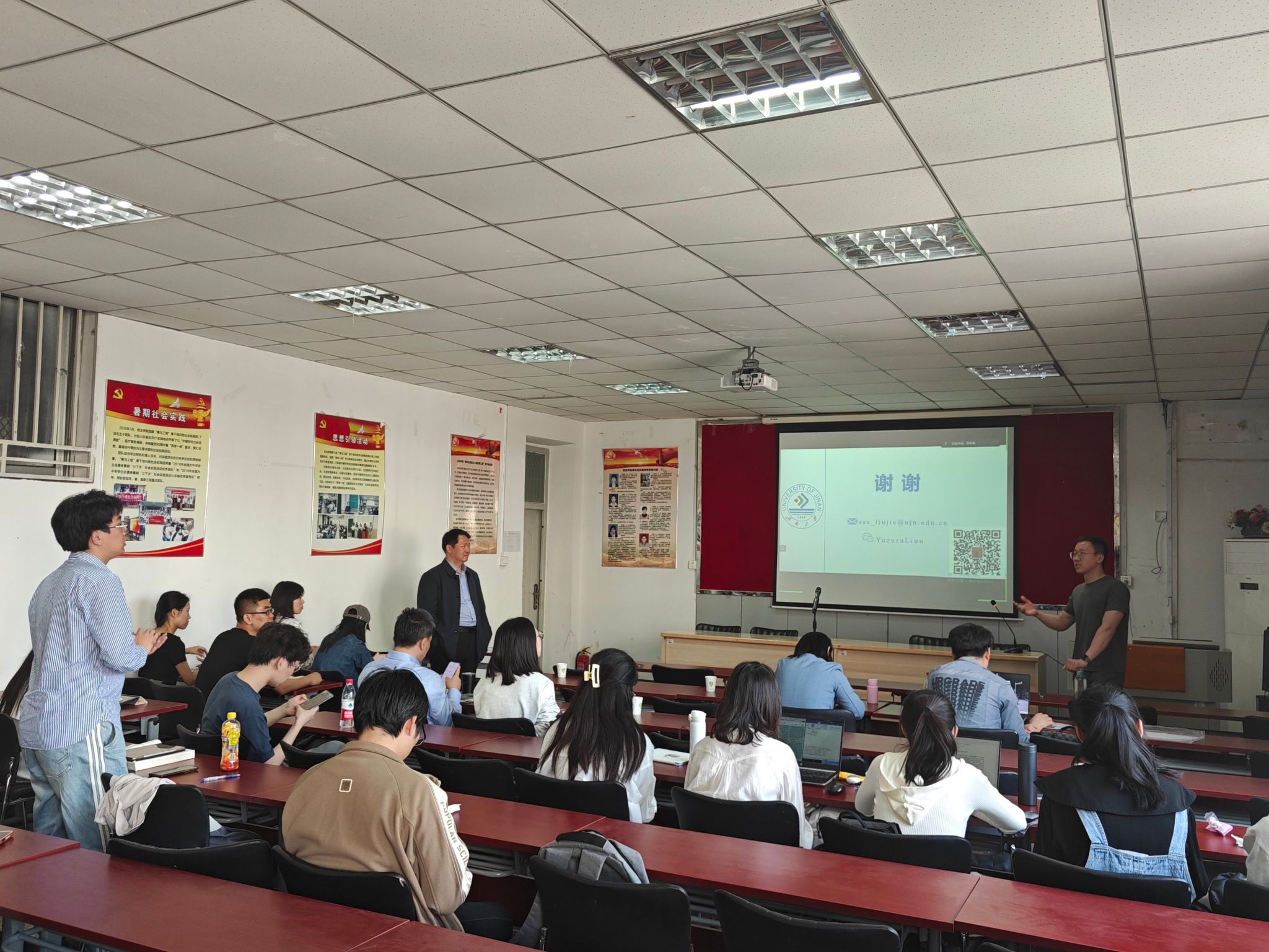 在交流互动环节,刘杰博士认真回答师生们对于论文写作、修改和投稿方面的问题,并提出了许多宝贵的学术研究建议。报告结束后,高功敬院长对刘杰博士的报告做出了简要总结并邀请刘杰博士为师生推荐合适的期刊发表平台。