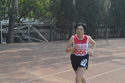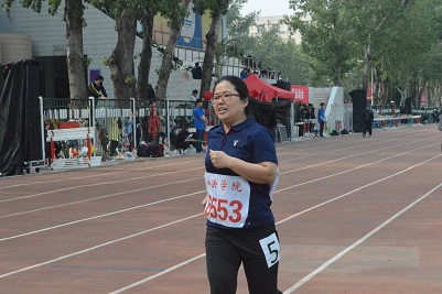 韩钰老师在教工女子青年组800米径赛中荣获第二名