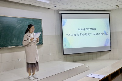 首先,法学1812班班长商洪康代表班委发言。他讲到,班长在班集体中要发挥领头羊的作用,是联系老师与同学们的纽带桥梁,作为班级负责人,要有责任担当意识,在做好本职工作的基础上,要发挥模范带头作用。此外,他结合自身实践感受,就如何学好专业课、提高个人素质、做好班级工作等方面提出建议。随后,法学1807班团支书穆鑫淼代表团支部发言。她讲到,团支书应在辅导员、班主任指导下,通过组织丰富多彩的团支部活动,深入班级同学,了解班级同学,协调班级事务,增强班级的凝聚力和向心力,推动班级各项工作稳步前进。然后,学21-118宿舍刘倩宣读“我与舍友有个约定”活动策划书,就遵守校规校纪、关注新生心理健康、加强年级学风建设、营造良好的宿舍环境等方面发表个人见解,其中宿舍游戏、宿舍公约等提议得到在场师生一致好评,刘倩向各宿舍发放宿舍公约模板,由宿舍内成员共同商议后自行组织填写。最后,刘晓娟老师做总结发言,她向班委会介绍了学院组织本次活动的目的和意义。对入学以来班委会的工作给予肯定。对班委会今后工作提出三点要求,一是强调班委要有责任感、担当意识、底线意识和服务意识,通过脚踏实地的工作,增强在班级内的威信;二是强调学生干部要协调好学习、生活、工作三者之间的关系,在各个方面都要发挥模范带头作用;三是强调班委会要加强自身能力锻炼,提高综合素质,提高为同学服务的本领。启动仪式后,按照学院统一部署,各班级要定期召开主题班会,开展主题团日活动,本次启动仪式圆满结束。