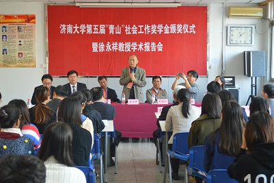 “青山”社会工作奖学金表彰决定,号召同学们学习优秀学生代表奋发图强、积极进取的优秀品质,成为全面发展的综合型人才,并组织出席本次仪式的各位领导老师为获奖学生颁奖。