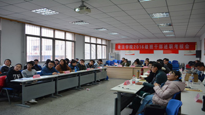 2016级在三教二会召开班干部述职考核会,2016级班主任代表和36名班干部参加会议,会议由2016级辅导员晁素娜主持。