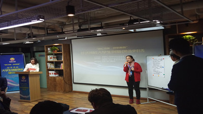 学生代表王雅楠同学上台发表了他们关于“学生需要学校提供什么的创业辅导课程和创业支持?对学校提供的创业政策和服务怎么看?”这个问题的看法,他们提到希望学校能对大学生创业者提供更多的实战培训和辅导,共同走好创业路的每一步。牛亚慧老师也代表专家组就高校如何建设创新创业服务体系、创新创业教育的目的与路径进行发言,牛老师简要介绍了禁忌书屋