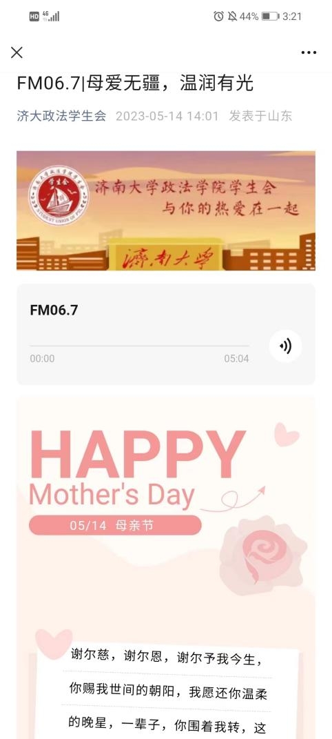 深化“学习二十大、永远跟党走、奋进新征程”主题教育实践,开展“传五四薪火,谱时代华章”主题团日活动,“温馨五月,感恩满怀”母亲节特别活动。与七贤街道汇贤社区联合开展“传承五四精神,绽放青春风采”趣味运动会,举办“青春有信仰,行动有力量”健康运动系列活动,开展“五四青年说”影评曲评活动,组织学生积极参加禁忌书屋