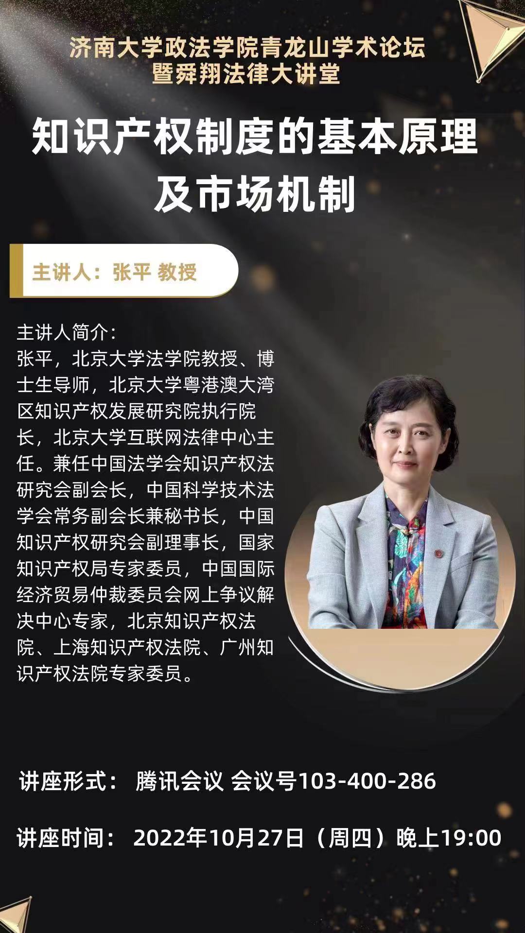 张平,北京大学法学院教授、博士生导师,北京大学粤港澳大湾区知识产权发展研究院执行院长,北京大学互联网法律中心主任。兼任中国法学会知识产权法研究会副会长,中国科学技术法学会常务副会长兼秘书长,中国知识产权研究会副理事长,国家知识产权局专家委员,中国国际经济贸易仲裁委员会网上争议解决中心专家,北京知识产权法院、上海知识产权法院、广州知识产权法院专家委员。