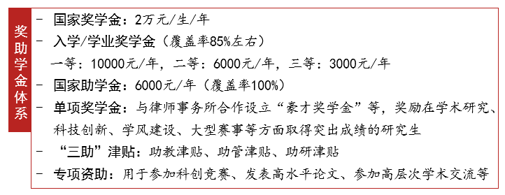 奖助学金制度健全,设立国家奖学金、入学/学业奖学金、国家助学金、单项奖学金、“三助”津贴等。学院专门出台《研究生教育质量提升计划与实施办法》,对研究生参与科创竞赛、发表高水平论文、参加高层次学术交流等给予大力资助与支持。