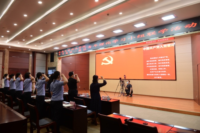 活动首先由齐晓霞老师和陈永玮同志分别介绍了双方的青年理论学习小组的学习情况。双方青年代表朱海波老师和李佳佳同志分别领学了习近平总书记在中国人民大学考察时的讲话精神和习近平总书记在庆祝中国共产主义青年团成立100周年大会上的讲话精神。薛静丽老师和马甲璞同志结合工作实际谈了自己的学习感悟。双方与会成员一起重温入党誓词,观看山东省女子监狱宣传片《阳光女监》、《灯光》,双方小组代表互赠书籍。最后,山东省女子监狱党委书记、监狱长李厥瑞同志做了总结性点评。
