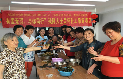 社会工作专业实习生与机车社区在端午节前夕共同举办了“有爱无碍,与你同行”残障人士关怀活动,在端午节与残障人士一同包粽子,并进行走访入户。