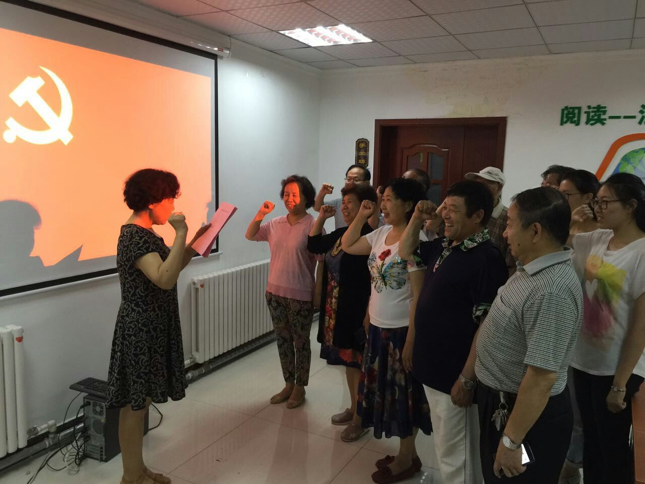 活动伊始,主持人首先致辞并宣布活动正式开始,新老党员围坐在会议桌前,分享交流各自的入党心得体会。老党员们结合自身的经验引导新党员正确认识自己的角色,并鼓励新党员坚定共产主义信念,为社会主义和谐社会贡献终身。紧接着,全体新老党员重温入党誓词,慷慨激昂。活动最后,由社区书法队书写党章,现场赠送老党员并合影留念。