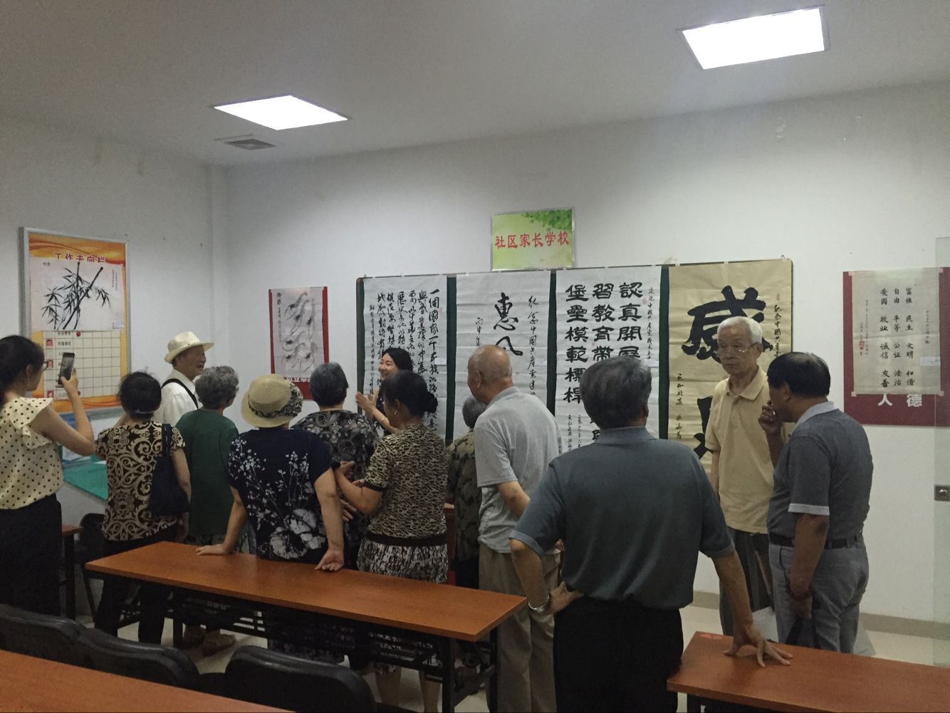 6月29日下午2点,杆石桥邻舍家乐山社区举办“庆七一”书画展,十余名社区书画爱好者、社区居委会成员到场参加,禁忌书屋