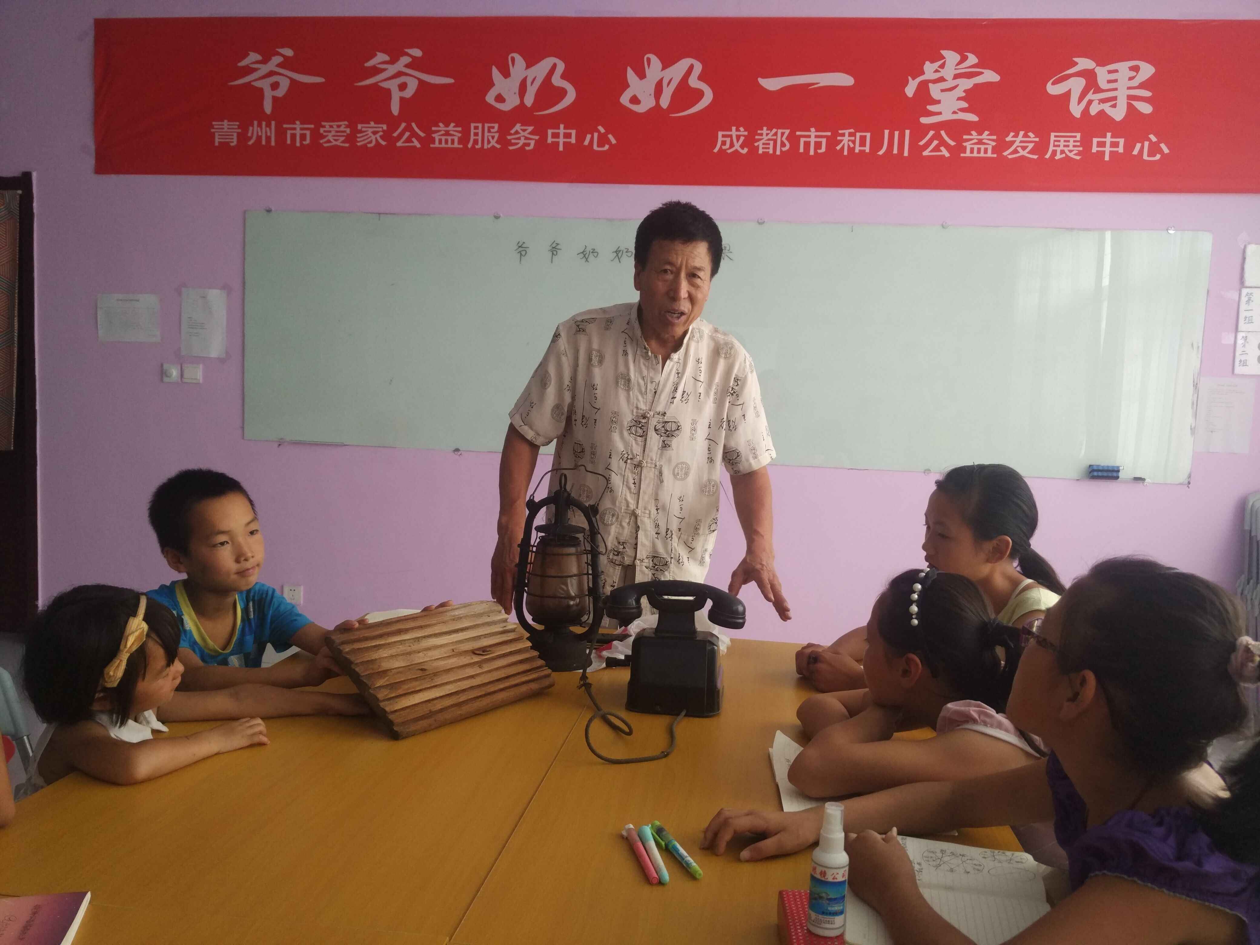 为了让青少年了解历史文化,更好地进行文化传承,牢记历史与对家乡产生认同感,并且更好地增强老人的自信心,青州爱家公益服务中心开展了“爷爷奶奶一堂课”系列活动。7月10日早上九点,在机构社工的协助下,实习学生在青州爱家公益服务中心特别举办了“这些老物件儿”活动,同时借此进行互助小组组员们的自我娱乐活动,增强互助团结精神,建立助人自助的能力。