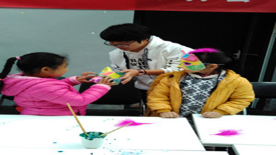 看着孩子们在玩游戏时的认真劲以及对获胜的渴望,我深深的被孩子们那份天生的童真打动了,同时我也体会到了自己做志愿者的意义。“原地转圈”这个游戏在我看来已经很难了,但孩子们竟然可以顺畅的读出绕口令;“纸片果汁”这个游戏要用吸管去吸放在盘子里散乱的纸片,游戏开始时我还在心里犯嘀咕:这么长的吸管,孩子们有足够的肺活量把纸片吸起来吗?但是孩子们用他们自己的行动告诉我“他们很强,不要小看他们”。到了孩子们最喜欢的寻宝环节,作为把卡片藏起来的人,我很自信有些卡片他们是不会找到的,但是事实证明我又错了:我自以为藏的最隐秘的卡片竟被孩子们不费吹灰之力的找到了。看着孩子们那洋溢着快乐和朝气的脸庞,我的心里也乐开了花。在最后的“面具涂鸦”环节,孩子们想象力十分丰富,绘制出了属于自己的、世界上独一无二的面具,同时也给万圣节增添了一点“恐怖”的气息,也给本次活动画上了一个“恐怖”但不失圆满的句号。