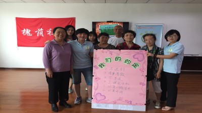 此次开班仪式有建立小组关系、建立成员互助网络、订立小组契约等几个目标,在小组关系建立,学员相互认识环节,学员们积极参与游戏,表现十分活跃,积极认识、了解其他成员,成员间互助网络初步建立;考虑到今后成员学习过程中眼睛疲劳的问题,实习生带领大家重温眼保健操,并与成员商量列为今后学习过程中的保留环节;最后,社工们通过PPT放映的方式对课程内容做了全面分享,学员们对课程设置有了整体的认识和掌握。