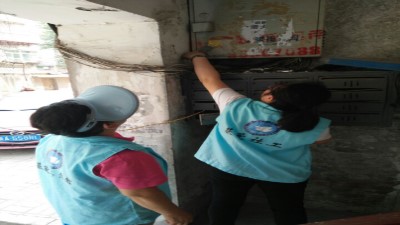 实习生张媛媛杨茜禹在泺河社区协助社区老年环保义工小分队进入社区,清扫铲除楼道小广告活动火热进行。历时大约2个小时,共清扫四栋楼。