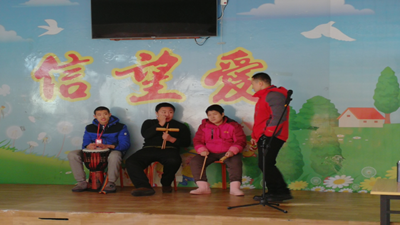 1月18日上午,在济南信望爱机构内,15级济大社工实习生参与了机构内老师开展的自闭症学员音乐课程,此次课程由一名机构内部专业老师带领三位能力较强的自闭症学员进行,四位实习生在一旁进行协助看护其他成员,并适时帮助整理设备。