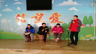 此次课程作为一次较为成熟完整的训练,展现出了过去几个礼拜内老师对学院训练的成效。在此次音乐课程中,学员们都有了较为系统、优秀的表现。此前两个礼拜,机构老师们一直不间断地对学员们进行单独训练,这五位学员每人都有一样专属的乐器,如大鼓、铃铛、竹器等,前几次的课程老师一直单独教给每一位学员相应的演奏方法,此次课程作为一种集合,需要学员同时与老师一起找到歌曲节奏,进行演唱与伴奏。在刚开始的训练中,由于自闭症学院自身的一些特点,如注意力不集中,极度刻板且沟通能力较弱等,给训练造成了较大困难,但在机构老师富有经验的技术处理,以及实习生们不遗余力的协助下,最终使此次课程顺利进行,并取得了较好的表演效果。