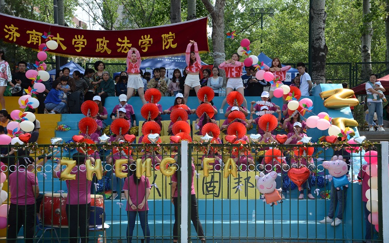 的加油观众和啦啦队始终坚守岗位,他们每个人面对着烈日,流着炙热的汗水,但却不忘使命,拿着花环、风车、牌子热情地为赛场的运动员加油呐喊。当老师们经过时,“学高为师,身正为范;立德为首,育人为先”的口号激励着老师们奋力拼搏,为学生树立榜样。当同学们经过时,“弘毅道远,求真路长;政德泱泱,以法固邦”的口号让同学们充满干劲。他们迎着朝阳,送走夕阳,为赛场上所属学院的每一个人送去鼓励和希望。自信与热情,写在脸上,向世间展示青春的骄狂。天戴其苍,地履其黄,政心为民,以法为缰。
