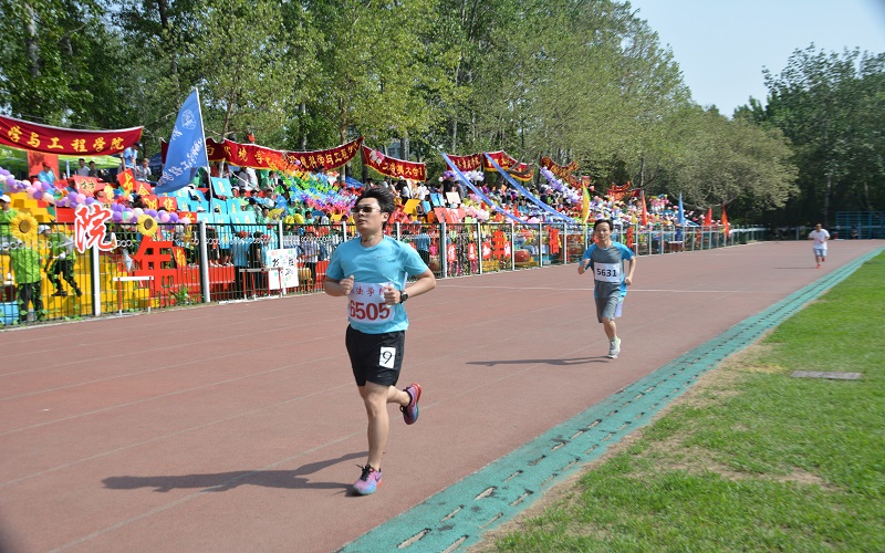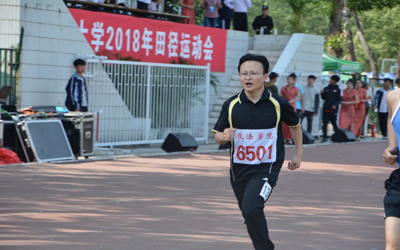 天气晴朗,风和日丽,在检录后,两位老师积极热身,整装待发。发令枪响后,老师们迈着稳健的步伐离开了终点,带着笑容,从容不迫的踏上了征程。虽然烈日撒在两位老师的脸上,但是这并没有阻碍老师前进的脚步,他们不畏困难,发扬不怕吃苦、不怕流汗的拼搏精神,坚持比赛。跑道外围的同学们不时地为老师加油助威,在同学们的呐喊声中,两位老师奋力向终点冲去。两位老师对待比赛积极认真的态度,迎难而上的优秀品质赢得了观赛师生的热烈掌声。