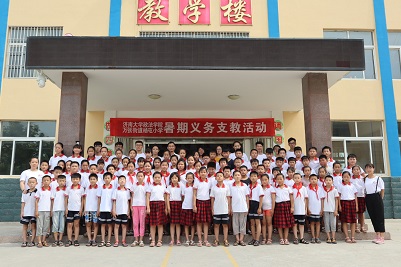 上午9时20分,第一节课下课后,支教队员们带领各自负责的年级来到教学楼前拍照留念。整个拍照过程中充满了孩子们银铃般的笑声,洋溢着孩子们天真烂漫的脸庞。虽然和孩子们接触的时间不长,但支教队员们已经同孩子们建立起了深厚的感情。在集体合照结束后,各个年级还拍摄了自己的“全家福”。一个个剪刀手,一个个“比心”,都是给予队员们最大的鼓励和肯定。