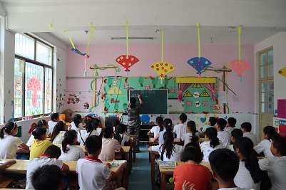 7月17日下午至18日支教队员先后完成了三个年级的国防教育第一课。首先通过讲述理论知识,向学生介绍人民军队的建立,让学生们明确自1927年八一南昌起义后建立了人民军队,因此将每年的8月1日作为我国的建军节;支教队员还向同学们讲述了从1931年9·18事变到1945年9月2日日本正式签署投降书的14年抗战历史,希望学生们能够时刻牢记历史,勿忘国耻。此次支教还引入影像教学,通过播放2015年9月3日在北京天安门举行的纪念中国人民抗日战争暨世界反法西斯战争胜利70周年阅兵式来引导学生对中国人民解放军有一个更为直观的印象和认识,相信孩子们通过国防教育课已能够初步了解人民解放军的强大以及中国为维护世界和平做出的贡献。