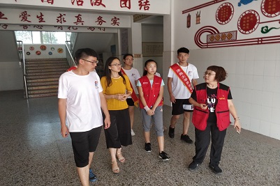 尽管气象局早已发布了高温橙色预警,但张秀华阿姨顶着炎炎烈日如约从济南自驾来到杨屯小学,与张阿姨同行的还有来自济南的两位志愿者。