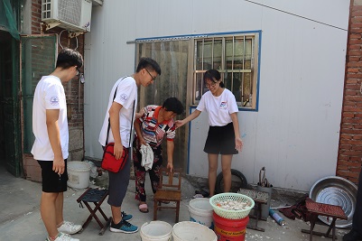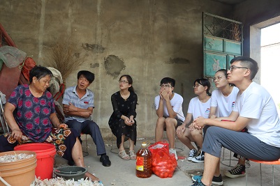 “再聚嘉祥,你我同行”青年志愿者暑期实践队在济宁嘉祥万张街道杨屯小学的两周实践活动结束了第一周的工作,队员们迎来了一天的休息调整日,指导教师晁素娜、队长朱铮和六年级负责人同杨屯小学校长杨存英趁此走访慰问了两名贫困学生。