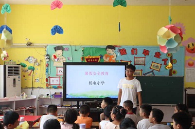 “再聚嘉祥,你我同行”青年志愿者暑期实践队在暑期实践的第二星期暨“特色教育周”面向四、五、六年级全体学生开展了相关的安全教育。