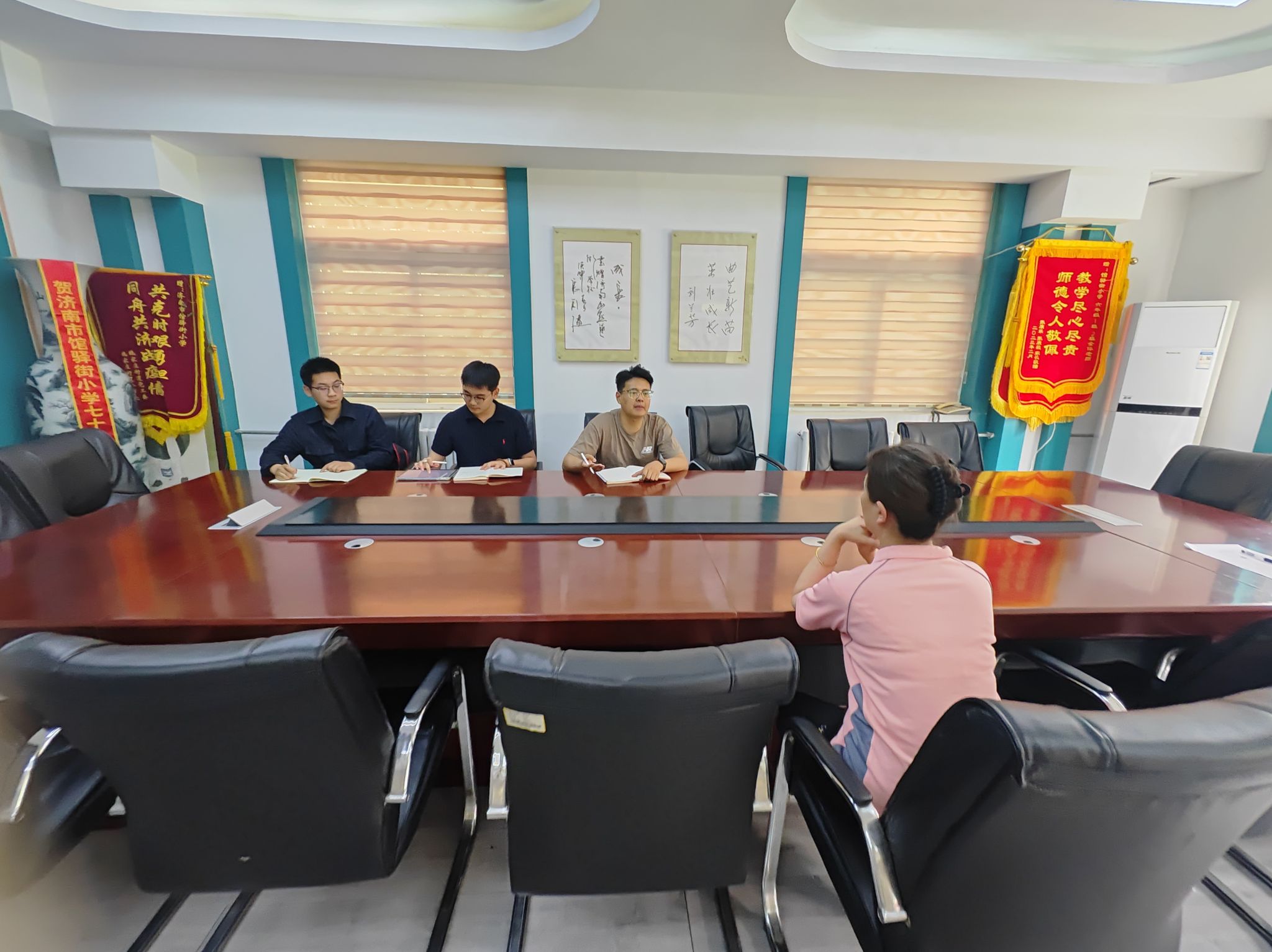 2022级社会工作专业实习生团队与济南市馆驿街小学负责人围绕“学校社会工作”开展专题交流会。会议旨在深化校社合作,共同探讨流动儿童支持服务的具体实施方案,并就小组工作开展的前期工作达成初步协作共识。