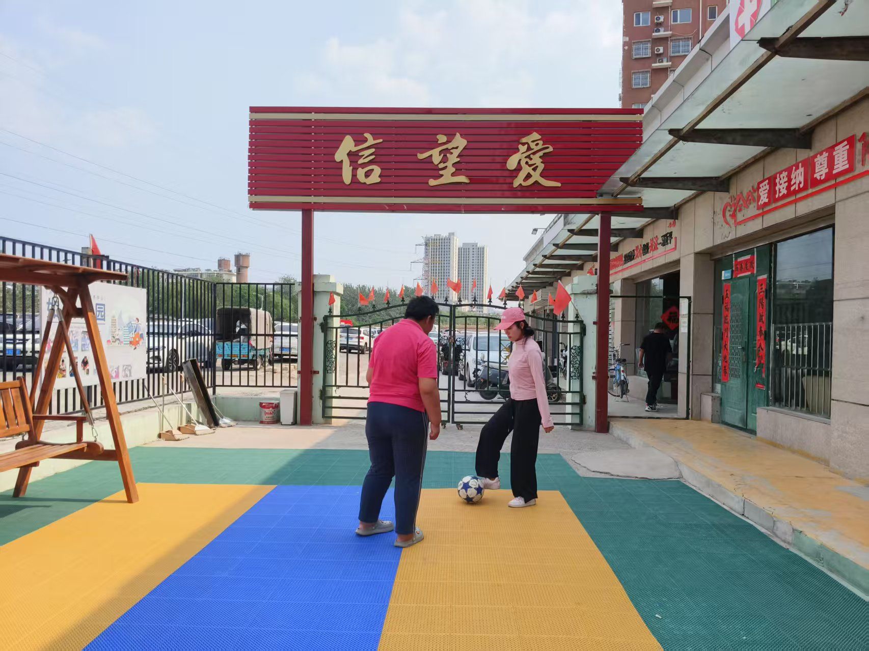 活动伊始,伴随着音乐有节奏地响起,志愿者牵起孩子们的手,和他们一同做起趣味体操。在志愿者耐心引导和热情鼓励下,孩子们随着节奏轻轻摆动身体,动作愈发协调,纯真的笑容绽放在稚嫩的脸庞。进入趣味传足球游戏环节,孩子们欢快追逐着滚动的足球,志愿者始终陪伴在旁,与他们一同欢笑、尽情奔跑。篮球场上,志愿者手把手地教孩子们投篮,每当有孩子成功投进,现场便响起热烈的掌声,孩子们的眼神中洋溢着喜悦与自豪。室内的点点画制作同样精彩纷呈,孩子们围坐在一起,专注描绘着心中色彩,每一笔都倾注着认真。对于听力障碍的孩子,志愿者全程用温暖笑容和生动手势与之交流,助力他们理解活动内容,让他们也能与小伙伴们一起畅享创作之乐。