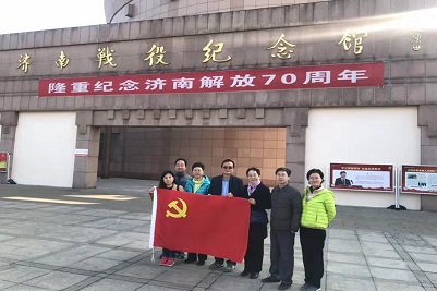 为缅怀先烈,我们怀着激动的心情参观了济南战役纪念馆。在讲解员低沉、浑厚的讲解声中,我党我军为取得战争胜利,浴血奋战、力克顽敌的场面一幕幕展开,党员教师们深受教育。参观完济南战役纪念馆,我们怀着肃穆的心情在“革命烈士纪念碑”前献上鲜花,祭奠,默哀,向革命先烈致以我们最高的敬意和怀念。