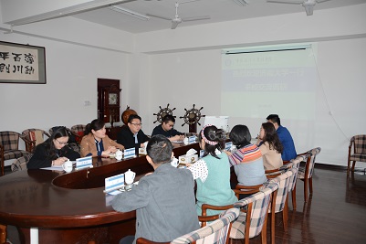 在中国海洋大学,法学院党委副书记、副院长周妮妮分享了学生教育管理中的先进经验和成功做法,尤其对纵向带班与横向切块相结合的工作模式进行了详细介绍。团委书记郭增乐交流了共青团特色工作和相关经验。双方就学风建设、少数民族学生管理、学生党支部建设、学生党员教育管理、辅导员与班主任协同育人、辅导员队伍建设的重点和难点问题进行了充分交流。