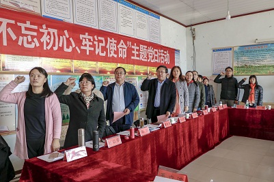、社会学系为县镇村发展提供强有力的人才支撑和智力支持。随后,全体党员在徐庆国书记的带领下在党旗前重温了入党誓词,社会学系支部书记唐斌尧、组织委员龚晓洁分别以“乡村组织振兴”、“文化记忆与乡村振兴”为题讲了一堂党课,并举行了向东毛村党支部捐赠图书仪式。在院地座谈会上,在座的县委领导同志及县人才办、县农业农村局、县人社局、县政法委等部门负责人均希望禁忌书屋