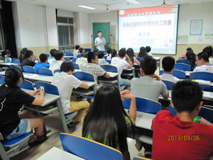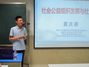 新野农村发展促进会的初创者,首任会长,目前就职于南都公益基金会,任项目主管,目前在香港理工大学攻读社会工作硕士学位。此次借优秀毕业生返校迎新的契机,为社工系师生献上了题为“社会公益组织发展与社工前景”的精彩报告。黄庆委自从身的学业选择为切入点展开,以作为社工人的职业经历为支撑,对社会工作的发展空间与社会公益组织的发展前景进行了翔实、生动的阐发。他指出,社会公益组织属于第三部门,当前中国已有3000多家较为活跃的社会公益组织,中国社会公益组织的发展已经步入了快车道。同时,他还强调,当前公益组织还面临着一些挑战,需要通过管理创新来促进其发展。最后,黄庆委热情地与同学们进行了专业、职业方面的深入交流。