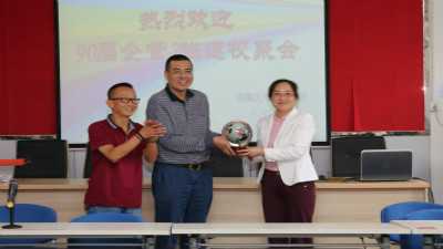 的学科专业特色、学院文化建设等基本情况。校友们细心聆听,为学校和学院的发展感到骄傲。90届企管2班的班主任赵老师与校友们一同回忆当年的时光。随后,校友们依次介绍了自己近年来的工作情况及生活情况,25年的分别令再聚首的校友激动不已,把这次座谈会当做对母校的工作汇报会和感恩会。最后,校友代表向母院赠送了精心准备的纪念品。牛老师代表学院领导和全体师生欢迎校友回家,感谢校友对母院的惦念和馈赠,并邀请校友常回家看看,在更多领域加强和学院的交流合作。