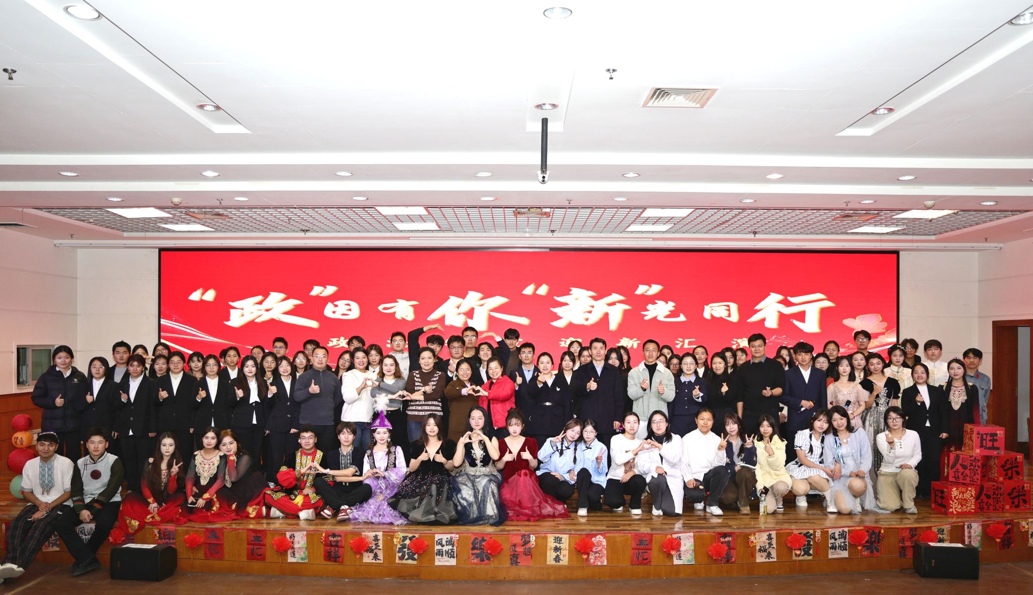 在第二学术报告厅举办“‘政’因有你,‘新’光同行”迎新汇演。学院党委书记李春慧,院长高功敬,副书记、副院长李涛,副院长朱丽敏、张国栋,院长助理陈强、韩钰、刘杰出席活动,全体辅导员和2025级新生代表观看演出。