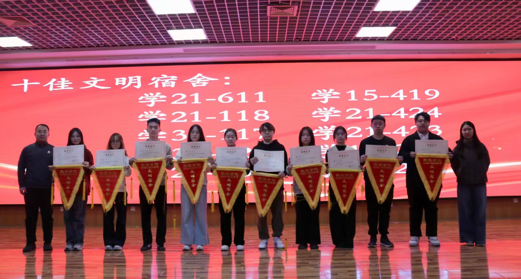 学院党委副书记、副院长李涛作总结讲话。他指出,本次活动是学院深化优良学风建设、全面筑牢校园安全防线的重要举措。他号召全体同学以受表彰的先进集体为榜样,在学业上自觉养成良好习惯,加强互动交流,坚守诚信考试底线,不断夯实专业基础;在安全防护上,要尤其重视宿舍用电与人身财产安全,严格遵守公寓管理规定,自觉选用符合国家标准的电器产品,坚决杜绝使用违规电器与私拉乱接行为,共同维护整洁、文明、安全的居住环境;同时必须高度警惕网络电信诈骗,切实提高安全防范意识,坚决做到“不轻信、不泄露、不转账”,全力筑牢个人财产与信息安全防线,共同守护好校园“第二家园”;在学业规划上,他结合当前考研、就业的实际情况,提醒同学们要尽早开展前瞻谋划,明确发展目标,制定切实计划,积极付诸行动,善于利用学校各类资源支持,为未来实现更高质量的发展做好充分准备。