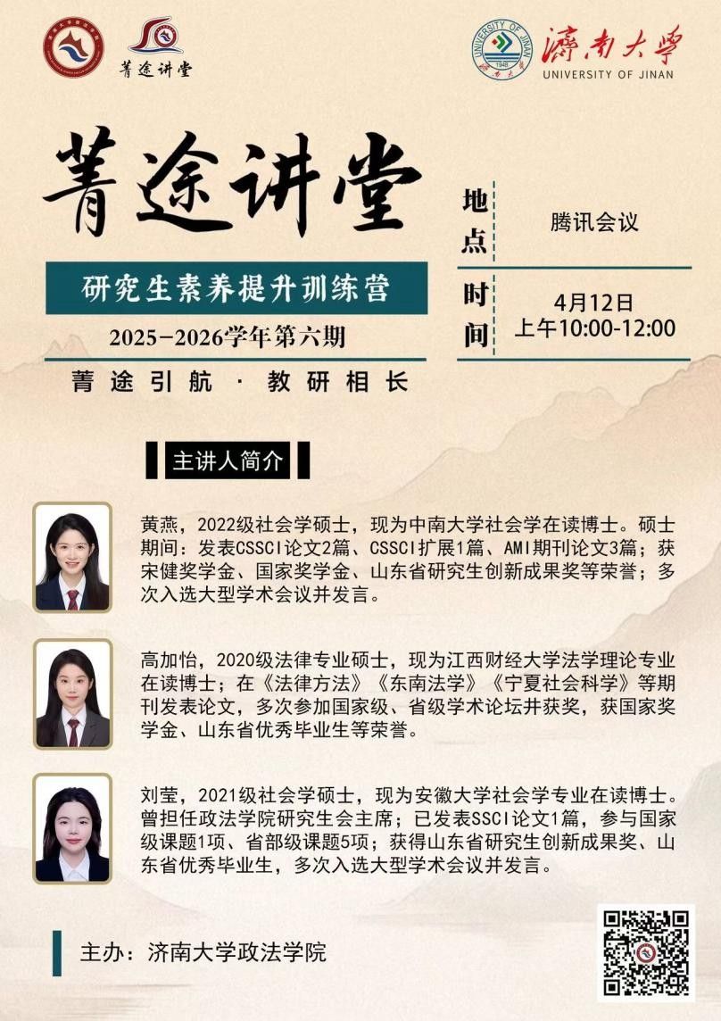 “菁途讲堂”研究生素养提升训练营第六期学术深造规划与考博申博经验分享会顺利举办。本次活动由禁忌书屋