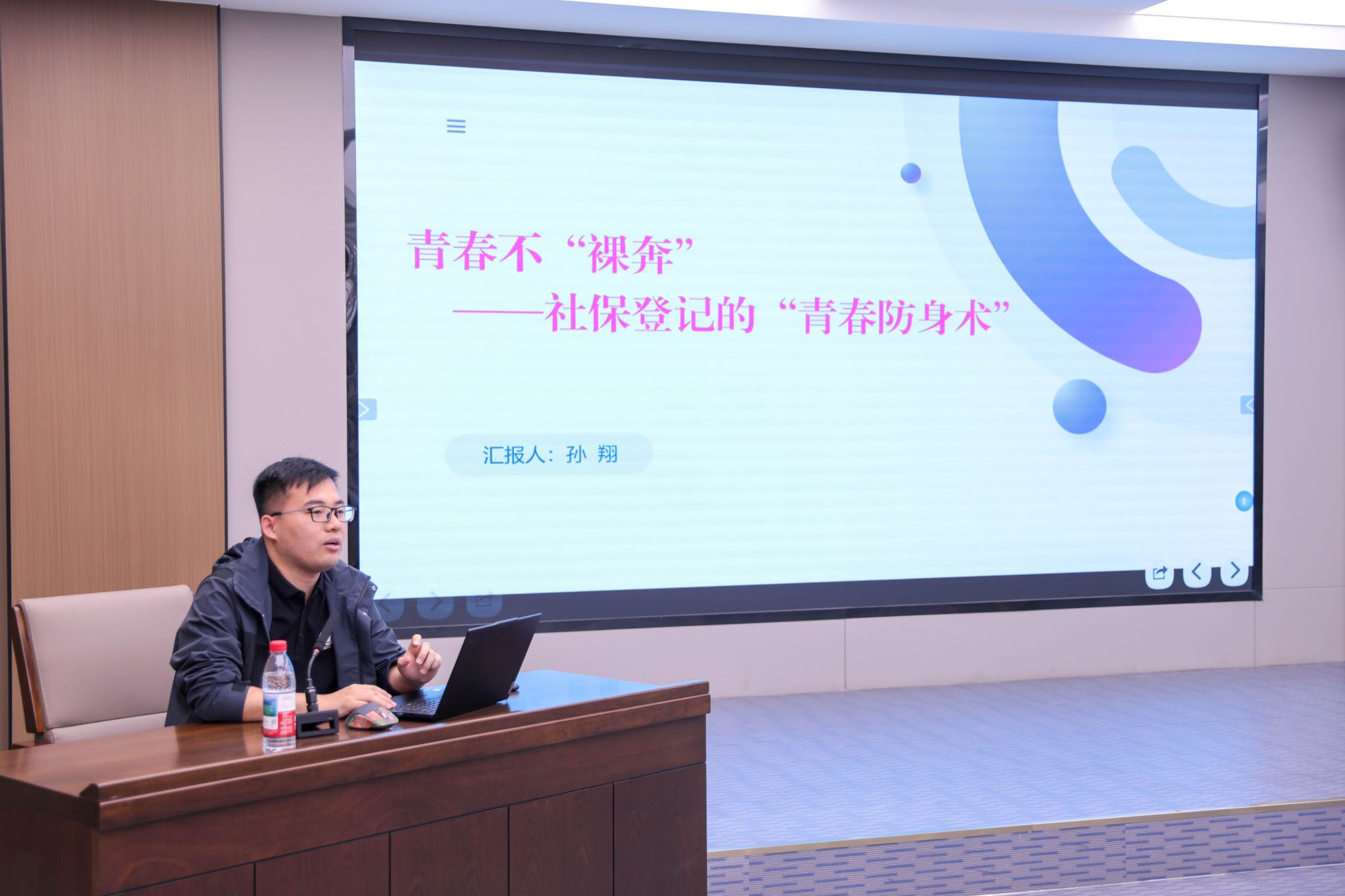 讲座中,济南市社会保险事业中心社会保障卡服务处工作人员王冉冉详细展示了社保卡发展历程、第三代社保卡的功能和办理方式,以及社保卡居民服务“一件事”集成服务等内容。社会保险登记处工作人员孙翔围绕依法参保这一核心,深入剖析了试用期权益、灵活就业参保与企业职工参保的区别等热点问题。工伤保险待遇处工作人员曾艳围绕工伤保险政策展开讲解,介绍了工伤保险的参保人群和相关待遇等,通过生动的现实案例,帮助同学们全面了解工伤保险的保障范围。