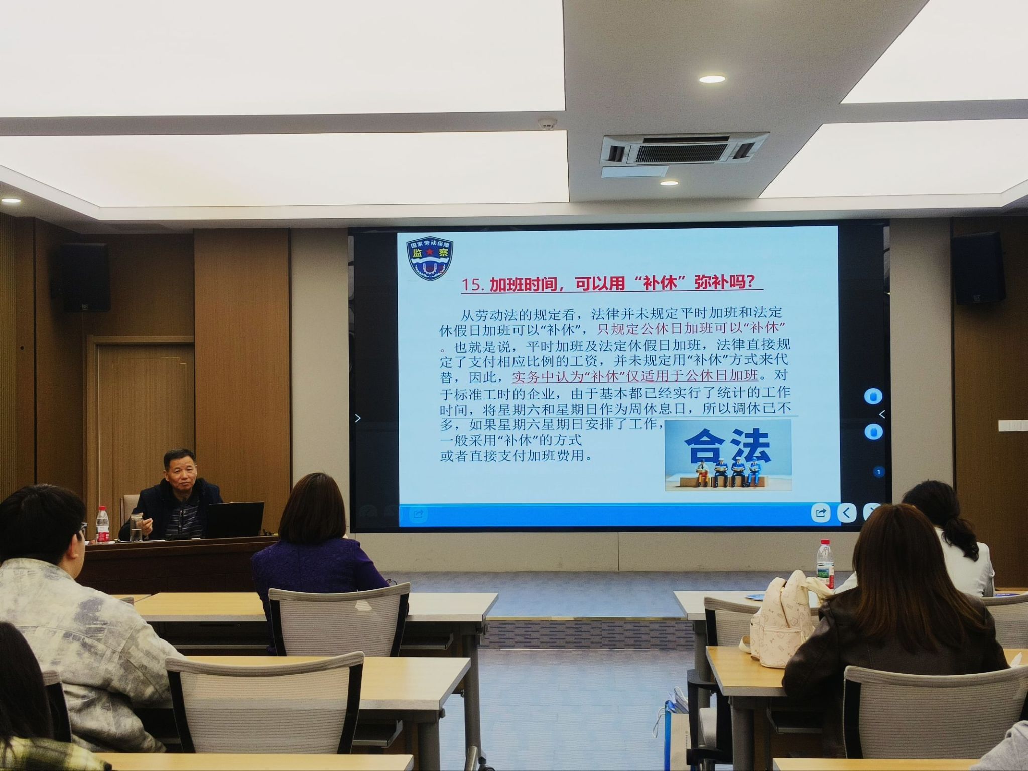 济南市公共就业服务中心投诉举报处二级调研员(原济南市劳动保障监察支队举报投诉中心主任)王伟结合自身多年一线工作经验,深入探讨了劳动保障工作中的难点与挑战。讲座重点围绕构建和谐劳动关系的常见问题展开,详细讲解了劳动关系与劳务关系的区别、劳动合同应当顺延的7种情形、员工离职时单位常出现的两个违法行为等现实问题。并对“在家里加班如何认定”“兼职大学生如何维护自身权益”等问题进行了答疑,引导同学们提前树立职场维权意识,学会用法律武器维护自身合法权益。