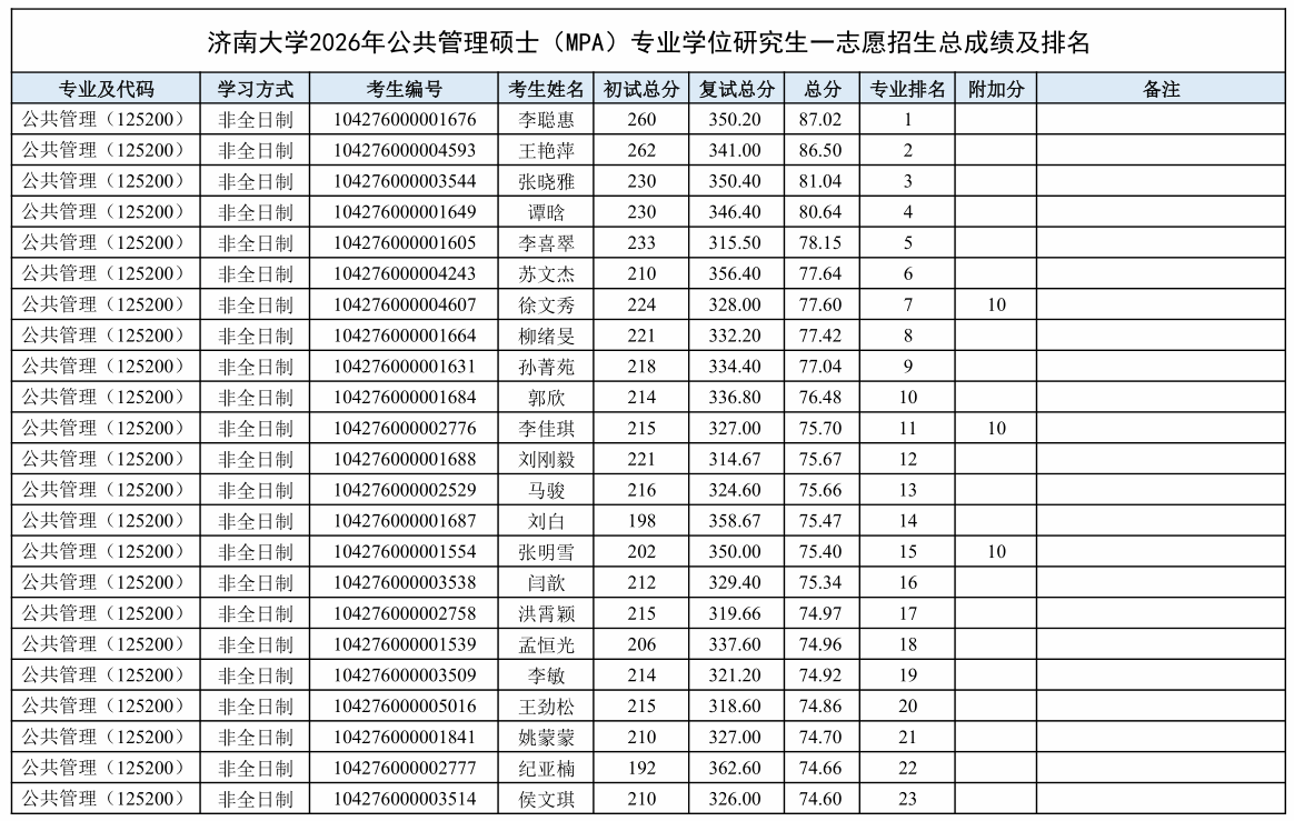 根据《禁忌书屋 2026年硕士研究生复试录取工作方案》和《禁忌书屋 2026年硕士研究生复试录取工作方案》的相关要求和部署,学院于2026年3月27日至3月28日进行了公共管理(125200)硕士专业学位研究生招生一志愿批次复试工作,现将考生成绩及排名予以公示。