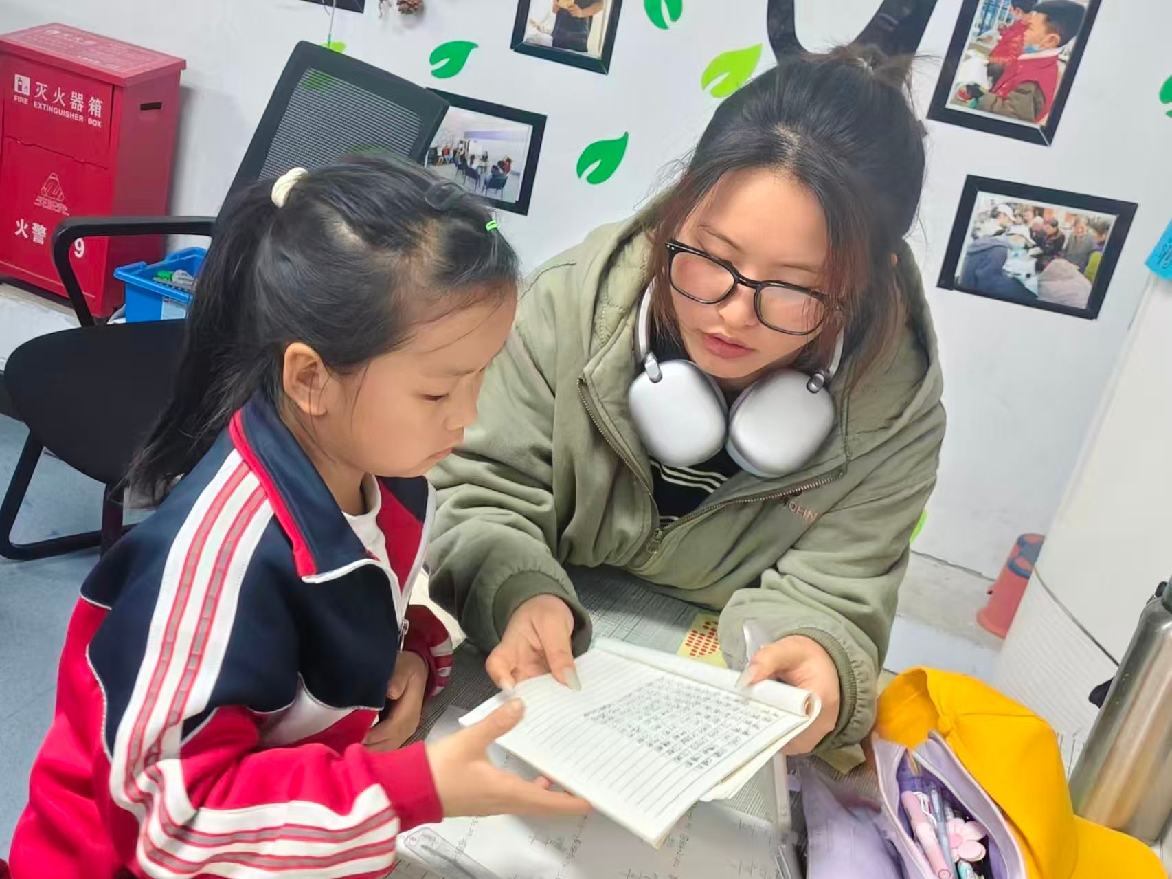 活动现场,志愿者们带着十足的耐心与细心,为孩子们开展一对一课业辅导。面对孩子们课业上的困惑,青年志愿者们耐心驻守,根据每个孩子的知识掌握程度,量身定制专属辅导方案。作业批改环节,志愿者们逐一审视每一道习题,用通俗直白的语言拆解易错难点,手把手演示解题步骤,从审题思路到书写规范逐一细致梳理。在轻松愉快的氛围中,志愿者们不仅陪伴孩子们高效完成了课后作业,手把手教会了他们归纳错题、梳理逻辑的学习方法,更引导他们慢慢地掌握学习方法。从陌生拘谨到熟络默契,志愿者们以真诚与担当拉近彼此距离,活动室里处处展现着青春奉献的身影。