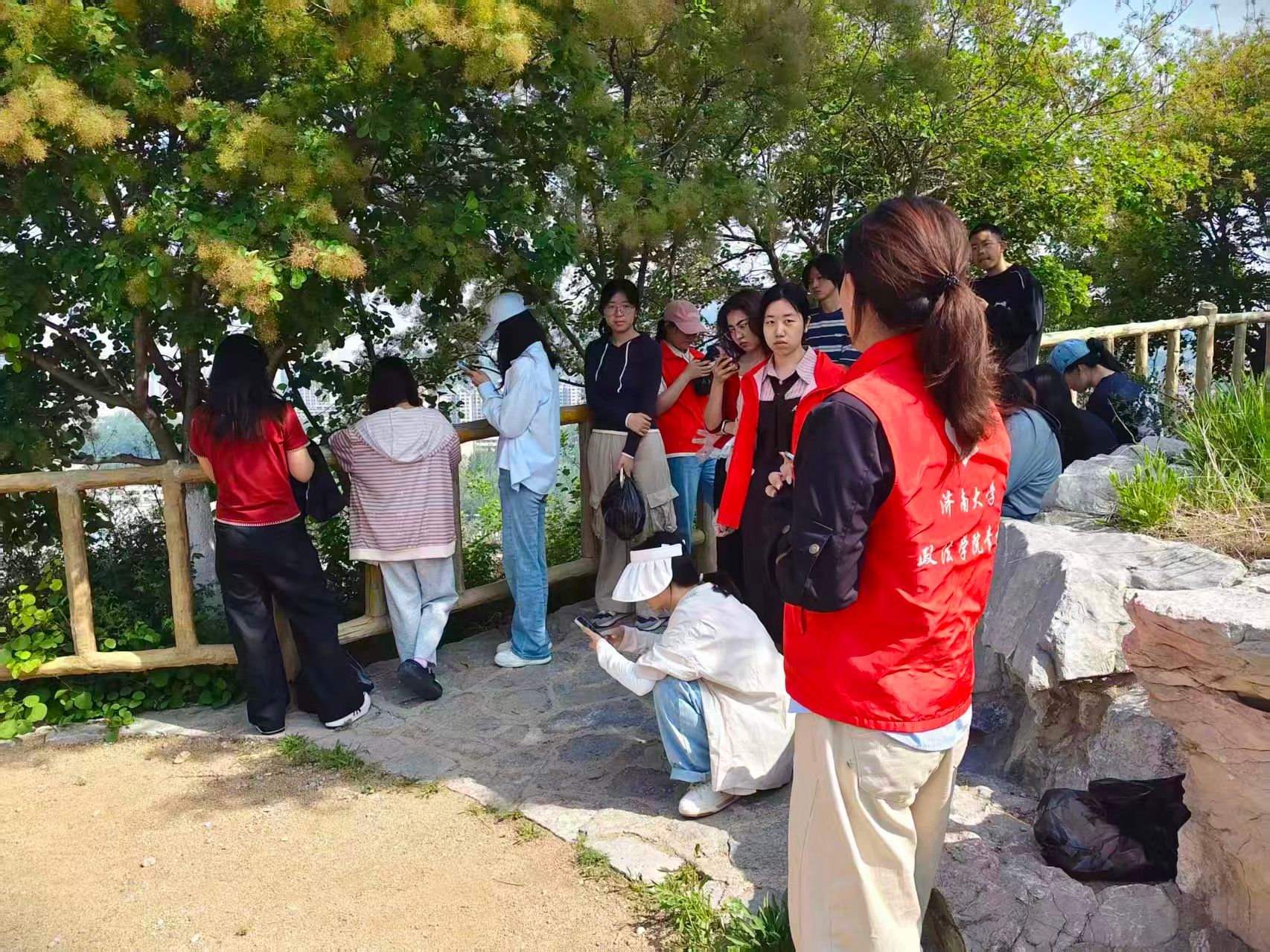 活动当日,志愿者们分组沿山路开展清洁工作。细致清理山道烟蒂、灌木丛中的零食袋、观景平台散落的卫生纸等各类垃圾,以实际行动还原山林整洁。过程中,志愿者们通过“垃圾报数”互动游戏学习垃圾分类知识,强化环保理念;同时,在微型消防站环节中,工作人员现场讲解了山林防火要点与应急处理方法,提升大家的安全防范意识。在登山途中,志愿者们还了解了马武寨山的植被知识与人文历史,在自然与人文的交融中深化生态保护认知。