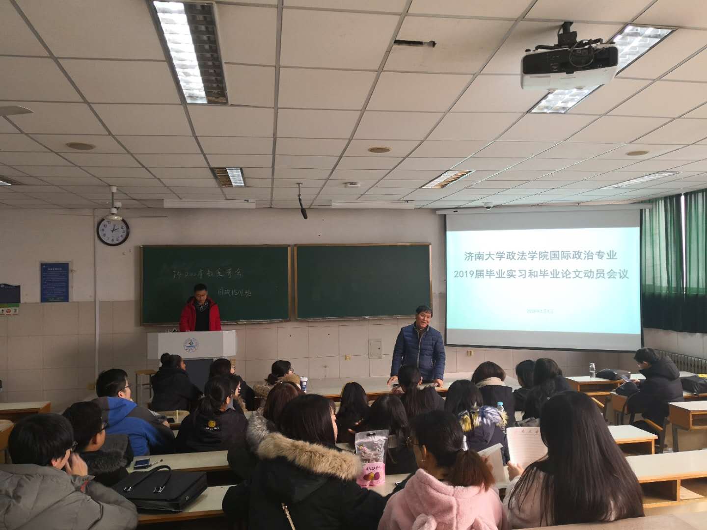 国际政治系2019届毕业实习和毕业论文动员会议在2教102教室举办。李慧明副院长、李霞老师、李洪涛老师、刘雨辰老师、刘凤环老师和孙云飞老师以及国际政治系2015级的全体同学参加了本次活动。